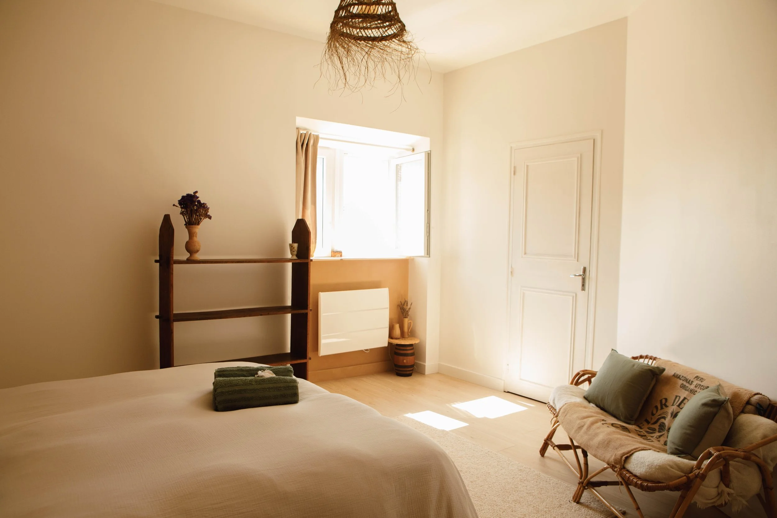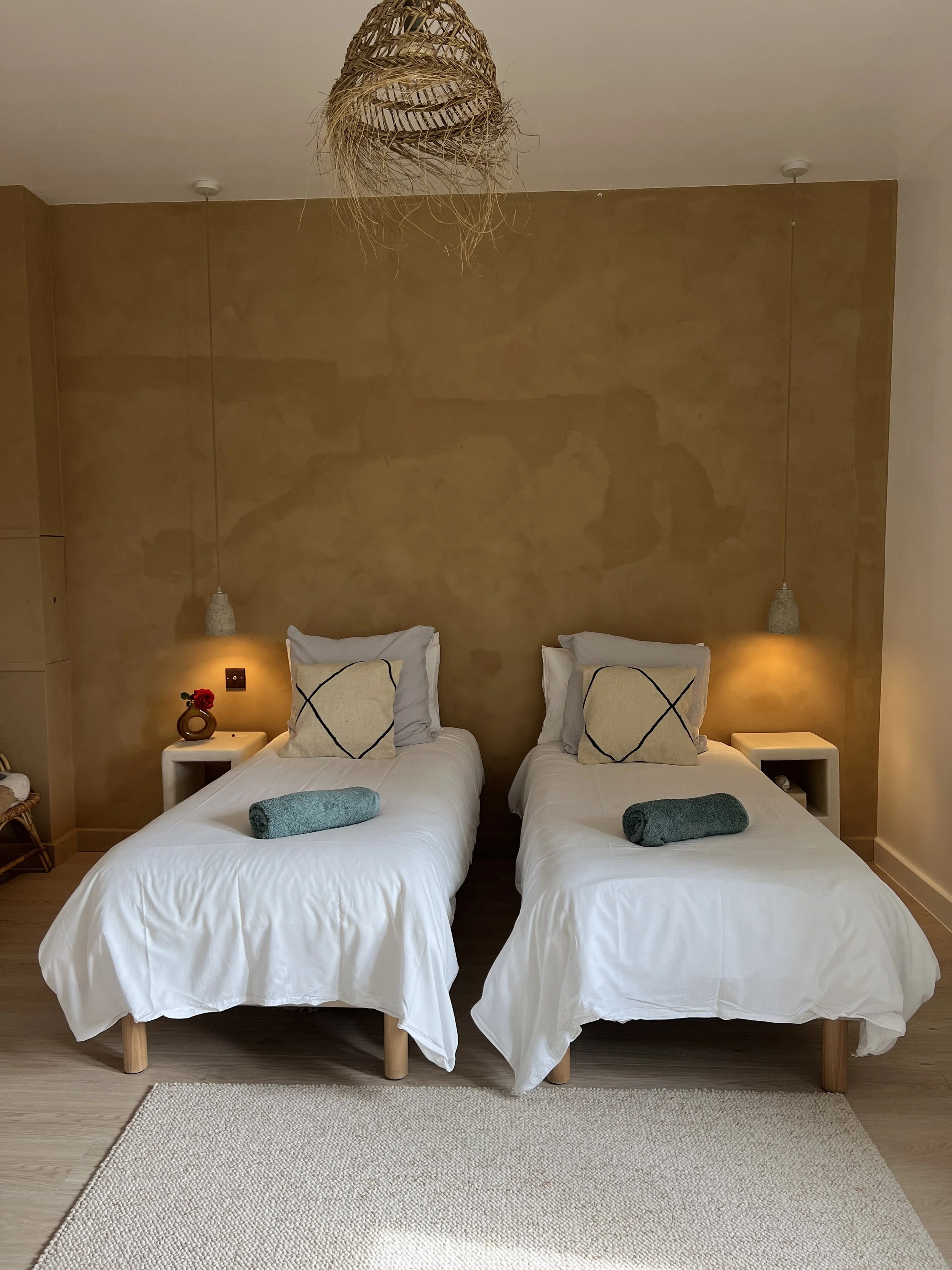 Pour celui-ci, nous nous sommes servis de notre expérience pour palier aux éléments qui péchaient selon nous au sein des établissements pour lesquels nous avons travaillé. Ainsi, nous avons fait le choix de matières nobles et naturelles, en respect de l’histoire de la maison et de ce que l’on souhaitait transmettre; un lieu épuré, authentique, idéal pour se recentrer et se recharger. Dans ce quotidien à mille à l’heure, ces espaces propices au ralentissement ont plus que jamais leur importance.